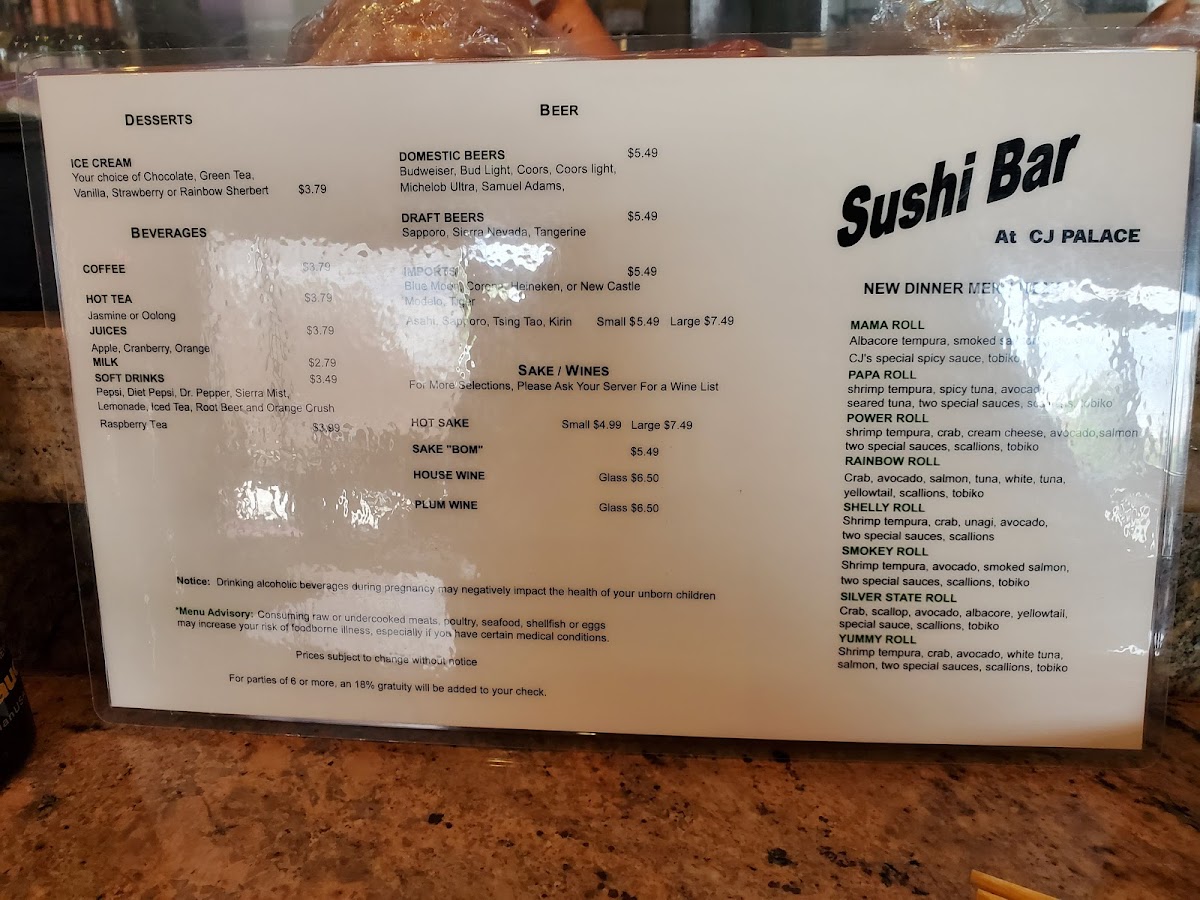 The menu at CJ Palace offers a balanced blend of comforting Asian flavors with a casual, approachable style that makes it easy to enjoy a relaxing meal any time of day. Whether you're stopping by for a quick lunch, a casual dinner, or a lively sushi night, the menu caters to a variety of tastes with both Chinese and Japanese favorites.